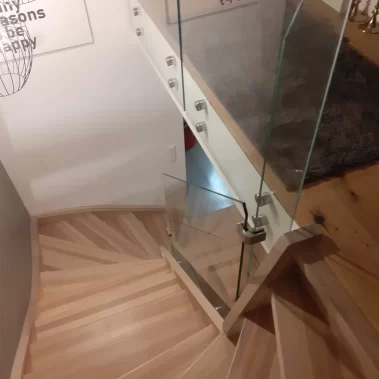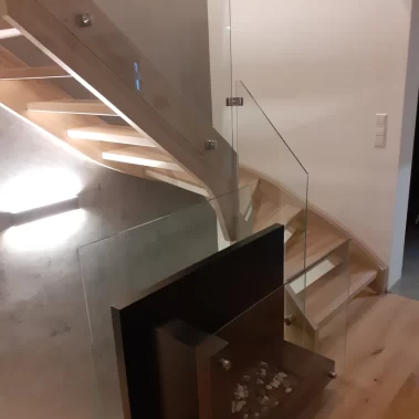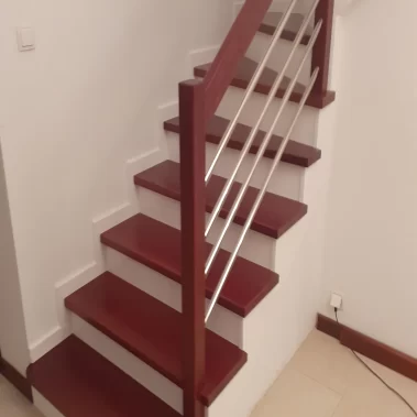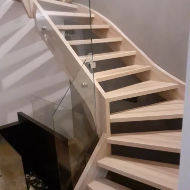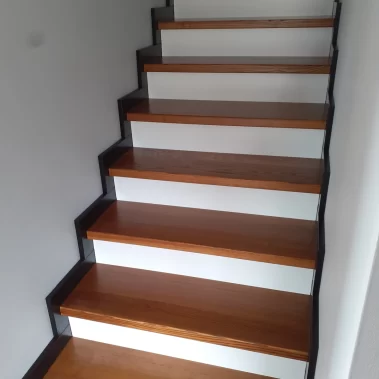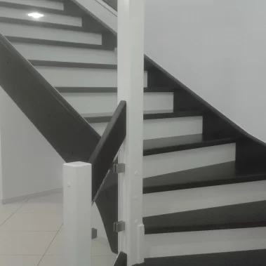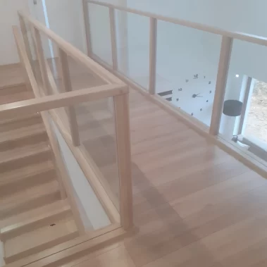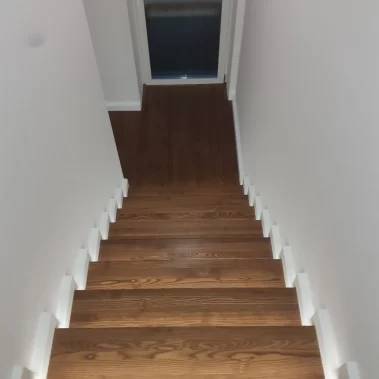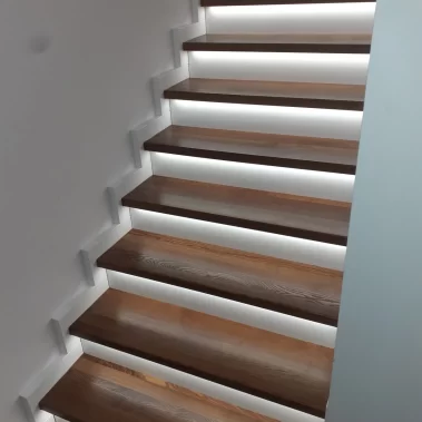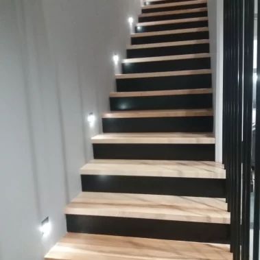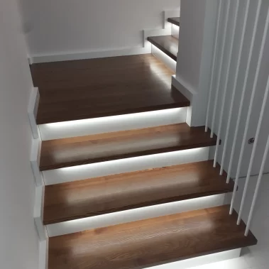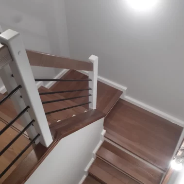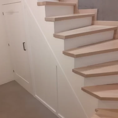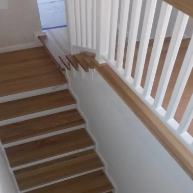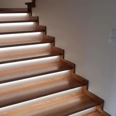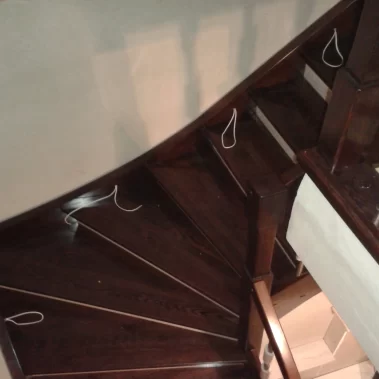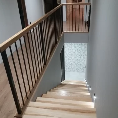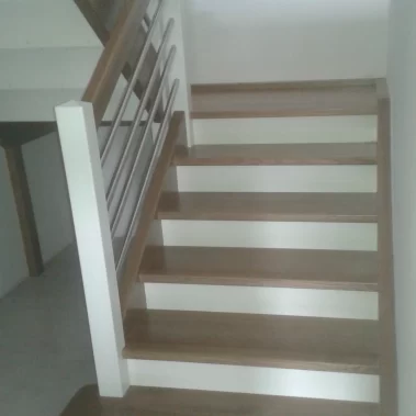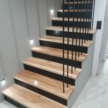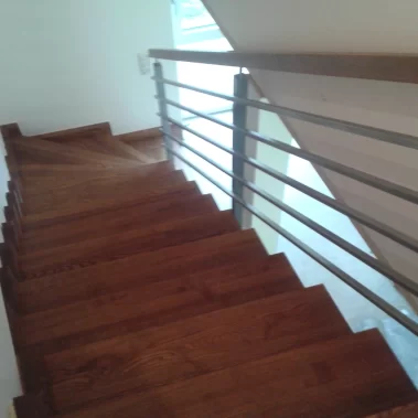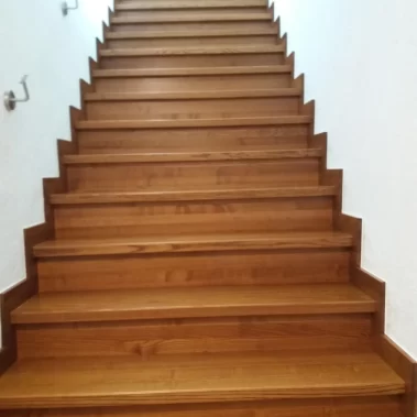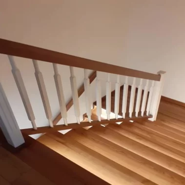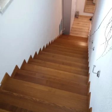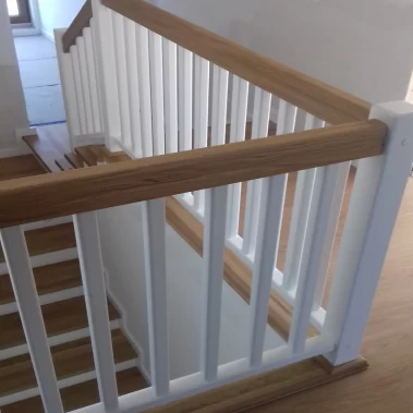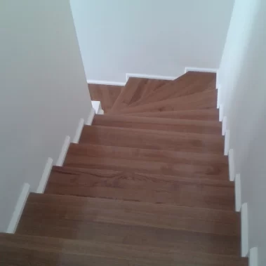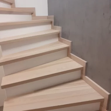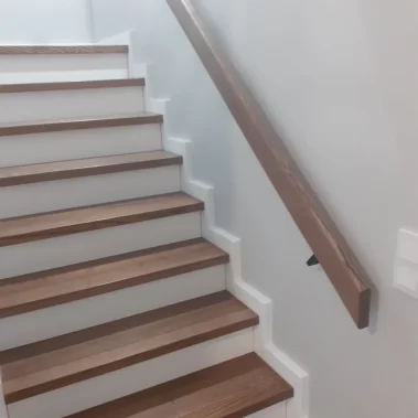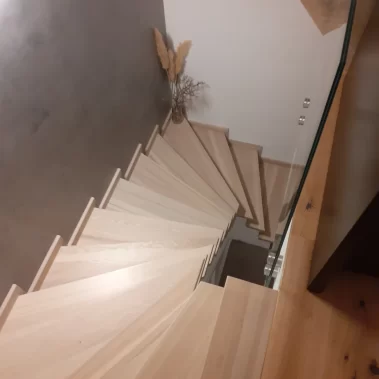 Produkujemy schody z drewna litego. Jedynie drewno wysuszone do odpowiedniej wilgotności może spełniać wymogi do wykonania stopnic. Każdy stopień powstaje z kilku sklejanych na szerokość elementów drewna.